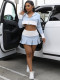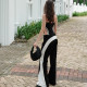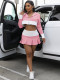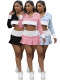 Color blocking patchwork long sleeved hooded pleated short skirt two-piece setUS$ 11.13 ~ US$ 12.37