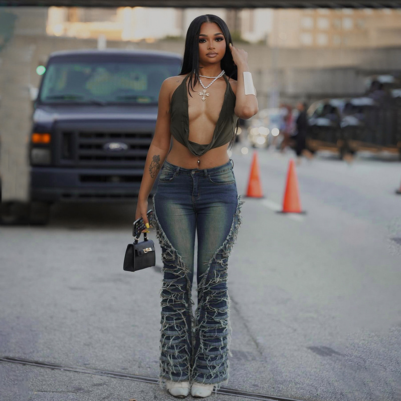 Cowboy slimming wide leg pants long pants Item NO.: K24PT333