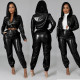 Women's fashion printing slim long sleeve zippered cardigan top leggings casual suitUS$ 11.33 ~ US$ 12.59