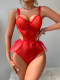 Mesh Irregular Splice Solid Color Sexy Low Chest High Waist Casual two-piece SetUS$ 8.40 ~ US$ 9.33