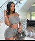 Sexy Strap Open Back Spicy Girl Top High Waist Wrapped Hip Denim Short Skirt SetUS$ 14.65 ~ US$ 16.28