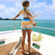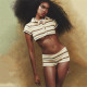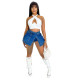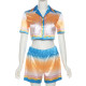 Sexy Polo Collar Contrast Short Sleeve Top High Waist Wrap Hip Shorts Casual SetUS$ 8.98 ~ US$ 9.98