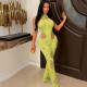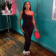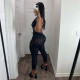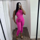 Sexy Sleeveless Knitted Perforated High Neck High Waist Slim Fit Long JumpsuitUS$ 10.35 ~ US$ 11.50