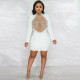 Hot Diamond Mesh Perspective Bubble Bead Backless Long sleeved Middle Skirt DressUS$ 9.96 ~ US$ 11.07
