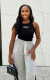 Hollow slim fit long sleeved top with high waist, tight fitting casual pants setUS$ 6.84 ~ US$ 7.60