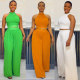 Denim workwear with multiple pockets patchwork, washed loose sleeveless jumpsuitUS$ 15.23 ~ US$ 16.93