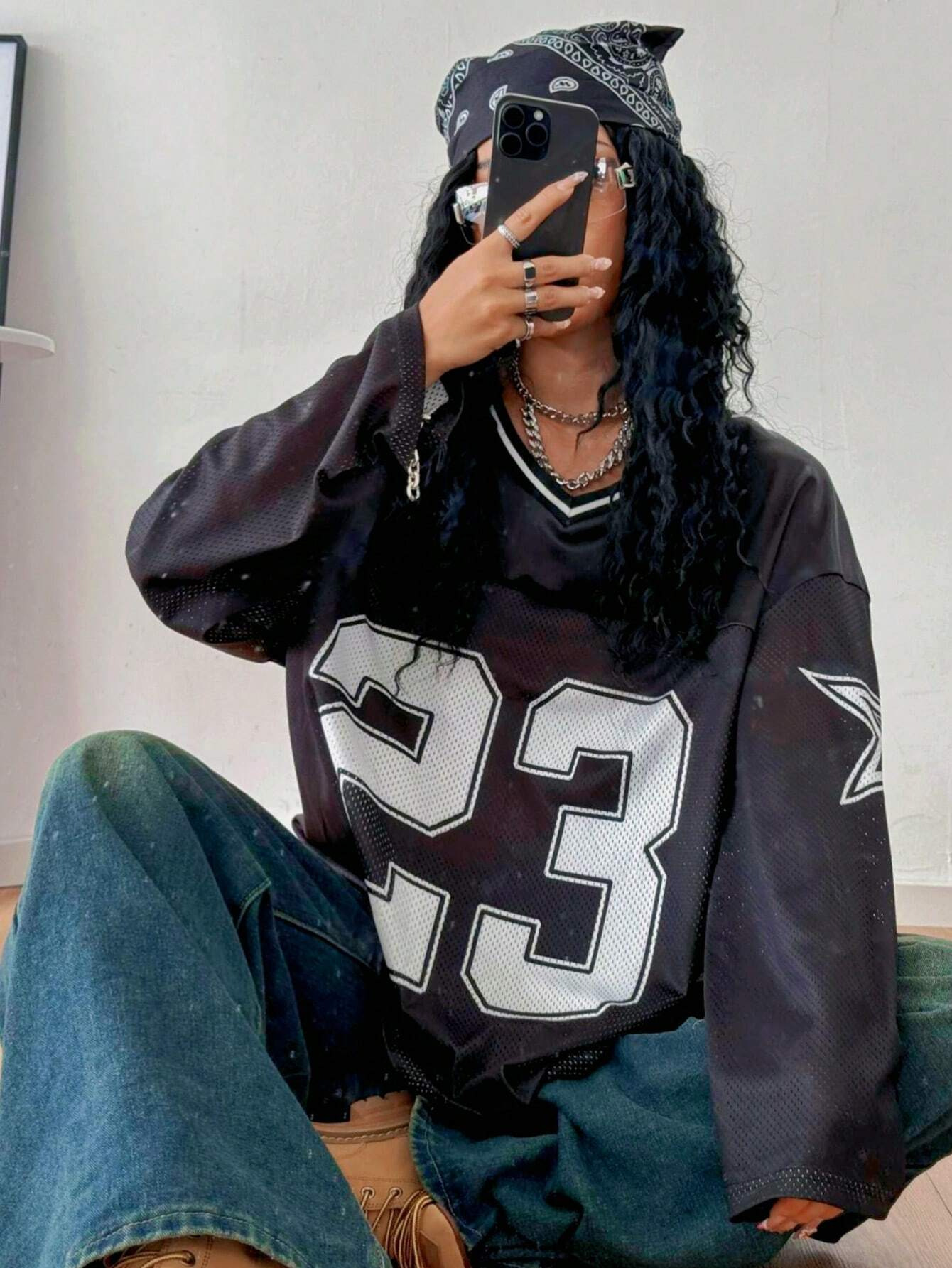 Copy| Product Name | Dopamine digital printed loose long sleeved T-shirt |