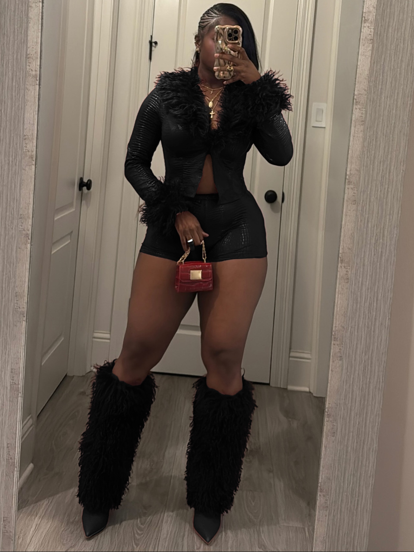 Elegant gold-foiled cardigan and shorts two-piece set HR25073 Item NO.: HR25073
