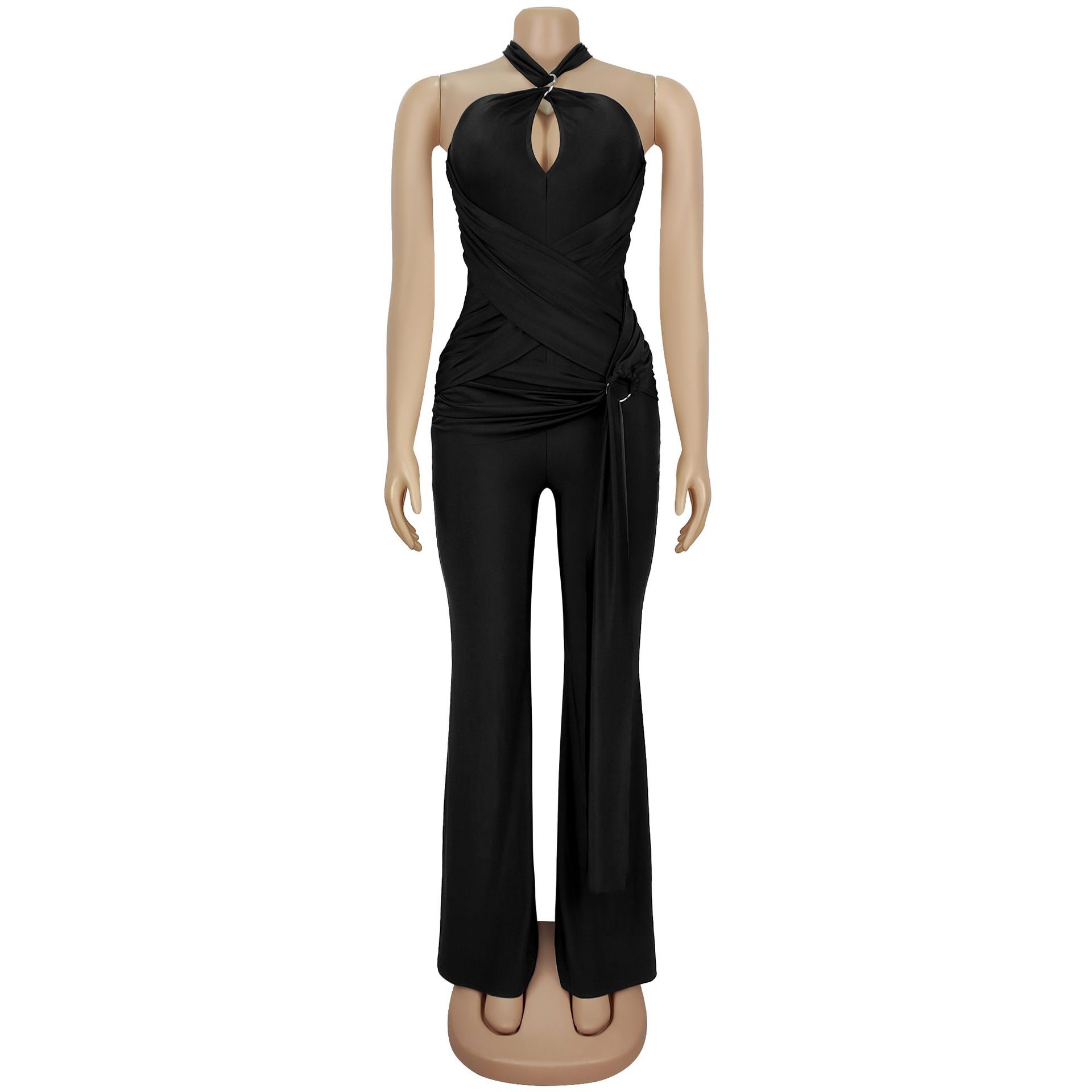 Copy| Product Name | Hanging neck wide leg wrapped arm jumpsuit |