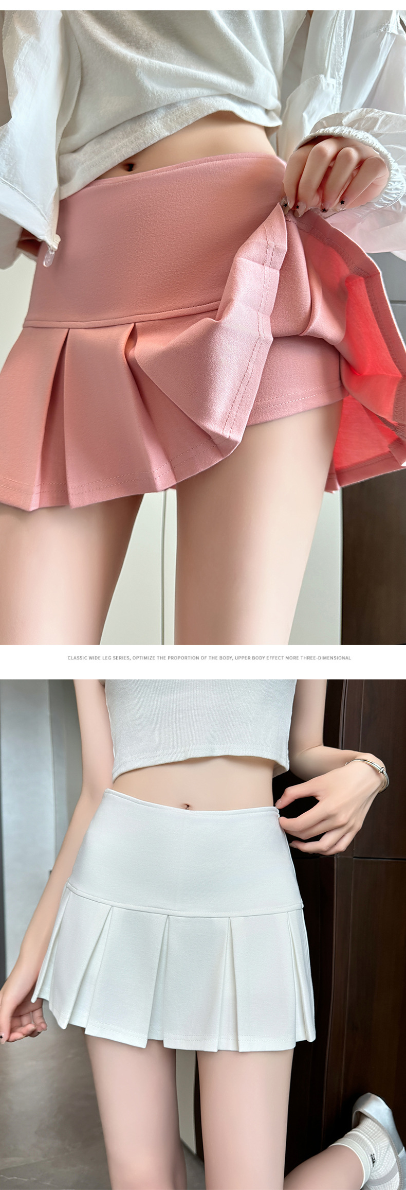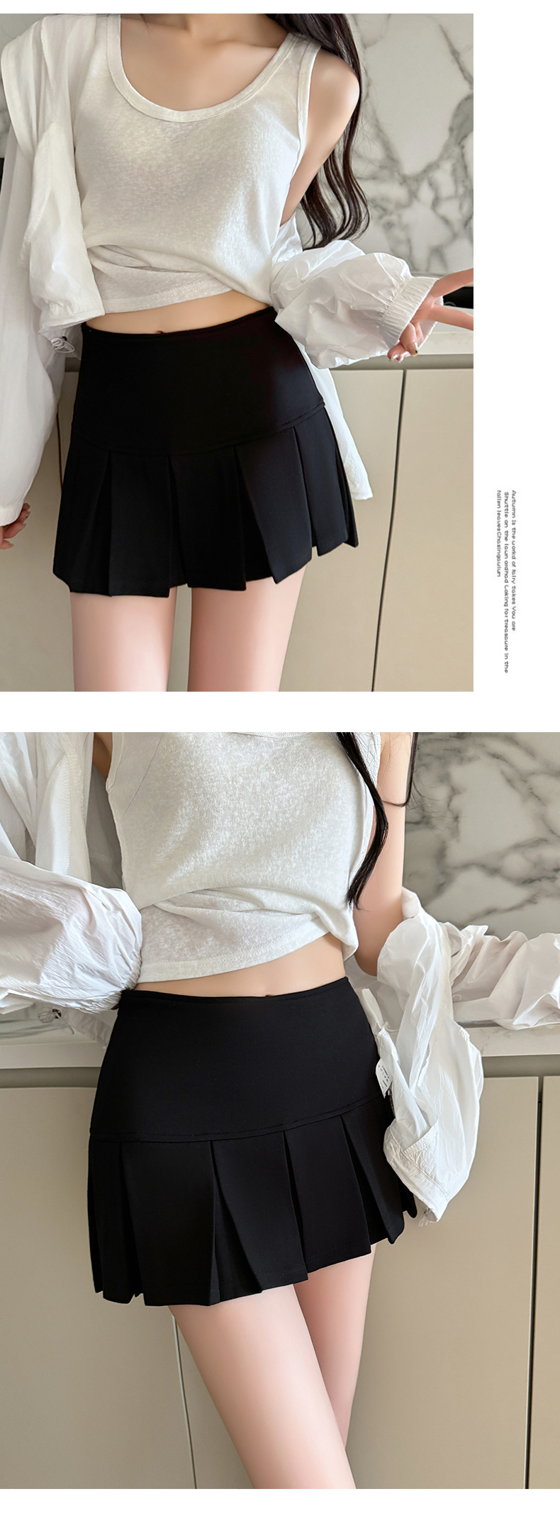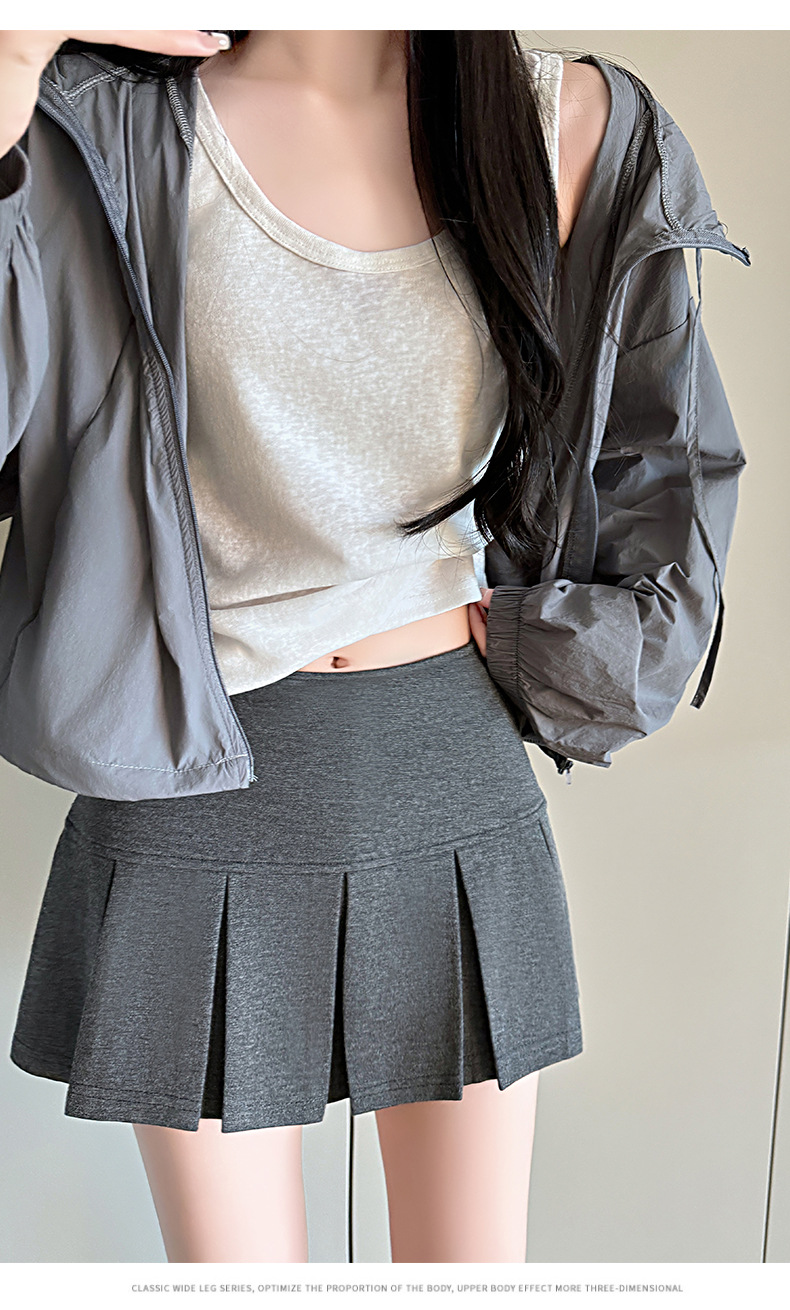 Invisible zipper short pleated skirt