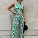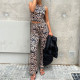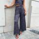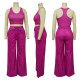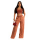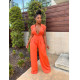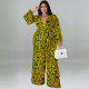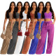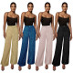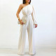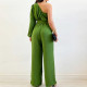 Diagonal collar single sided long sleeved high waisted wide leg jumpsuit with waistbandUS$ 12.50 ~ US$ 13.89