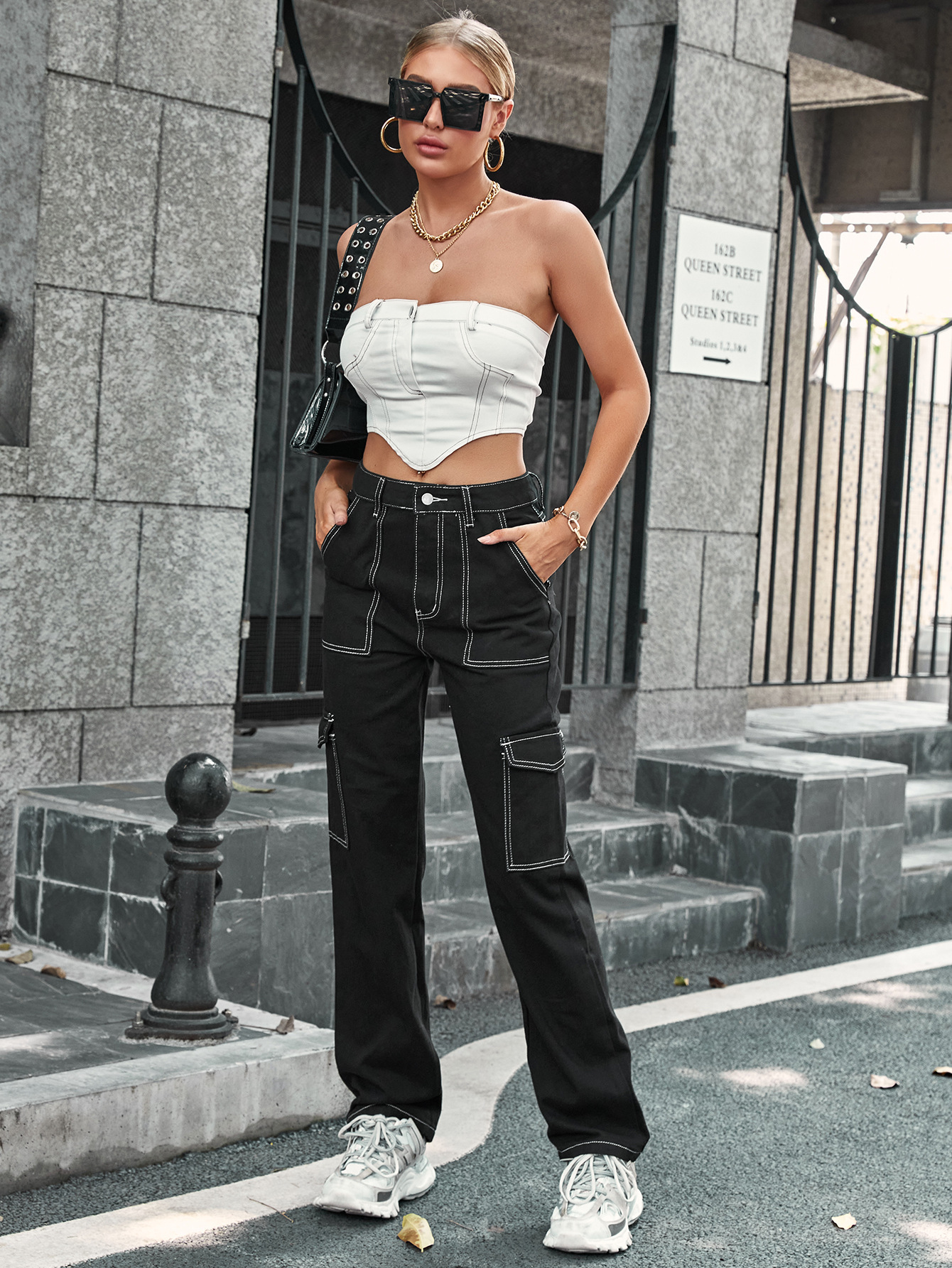 Loose denim pants