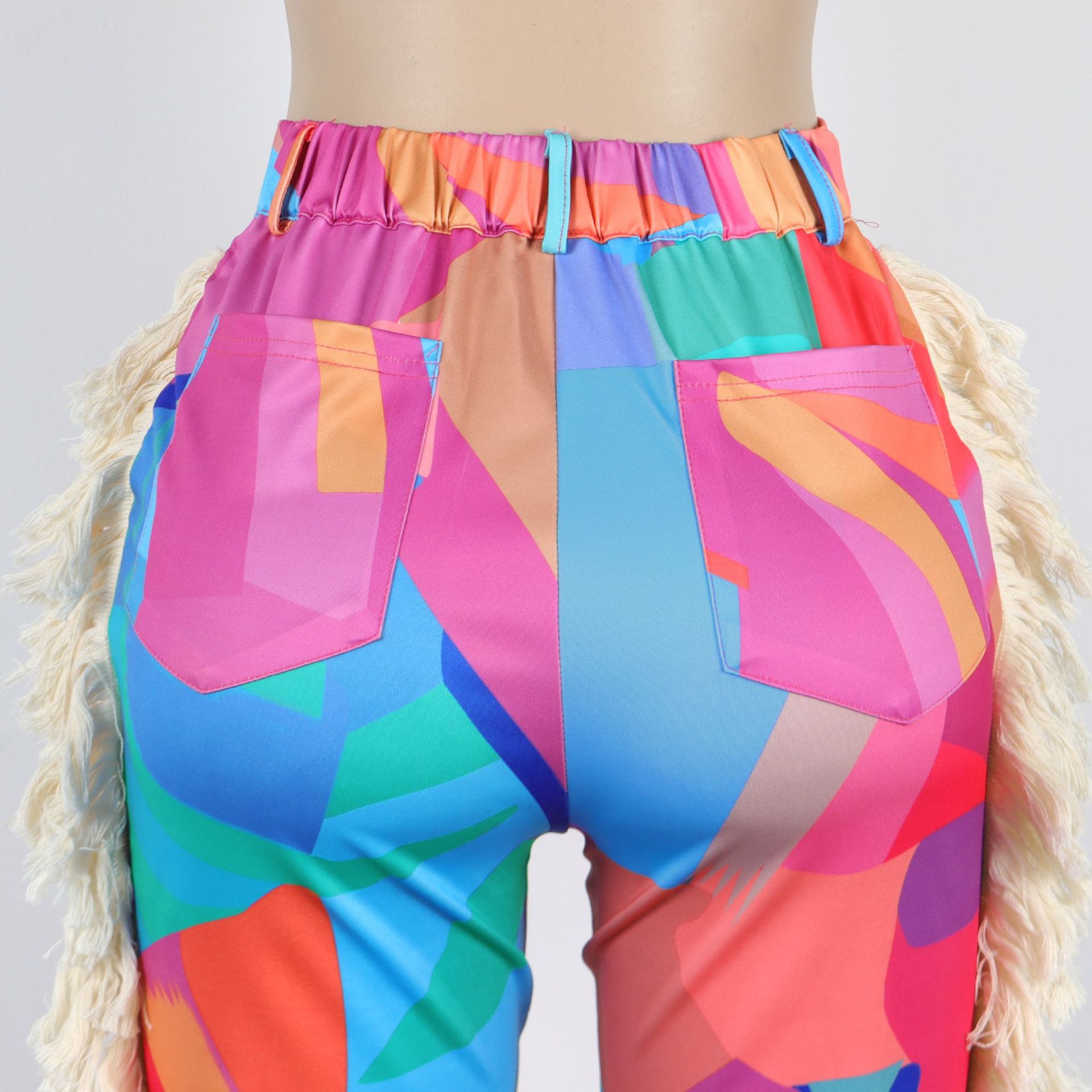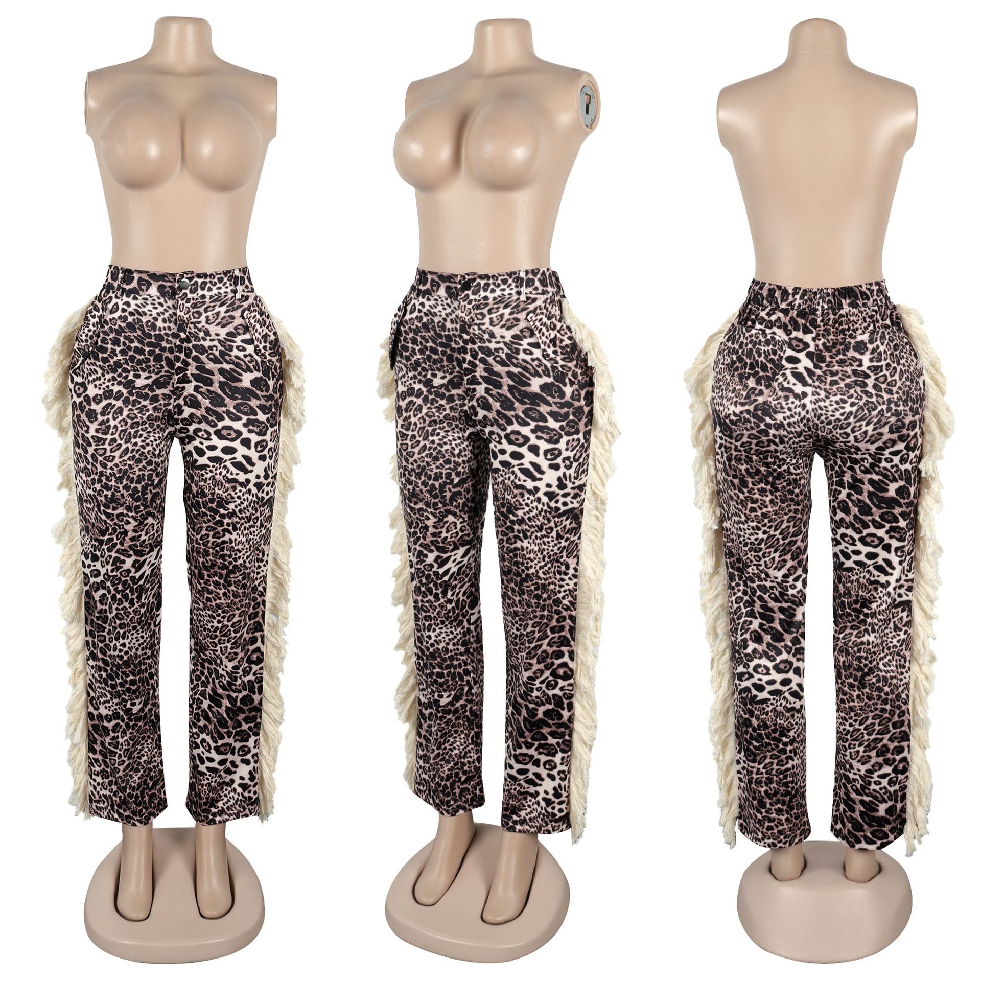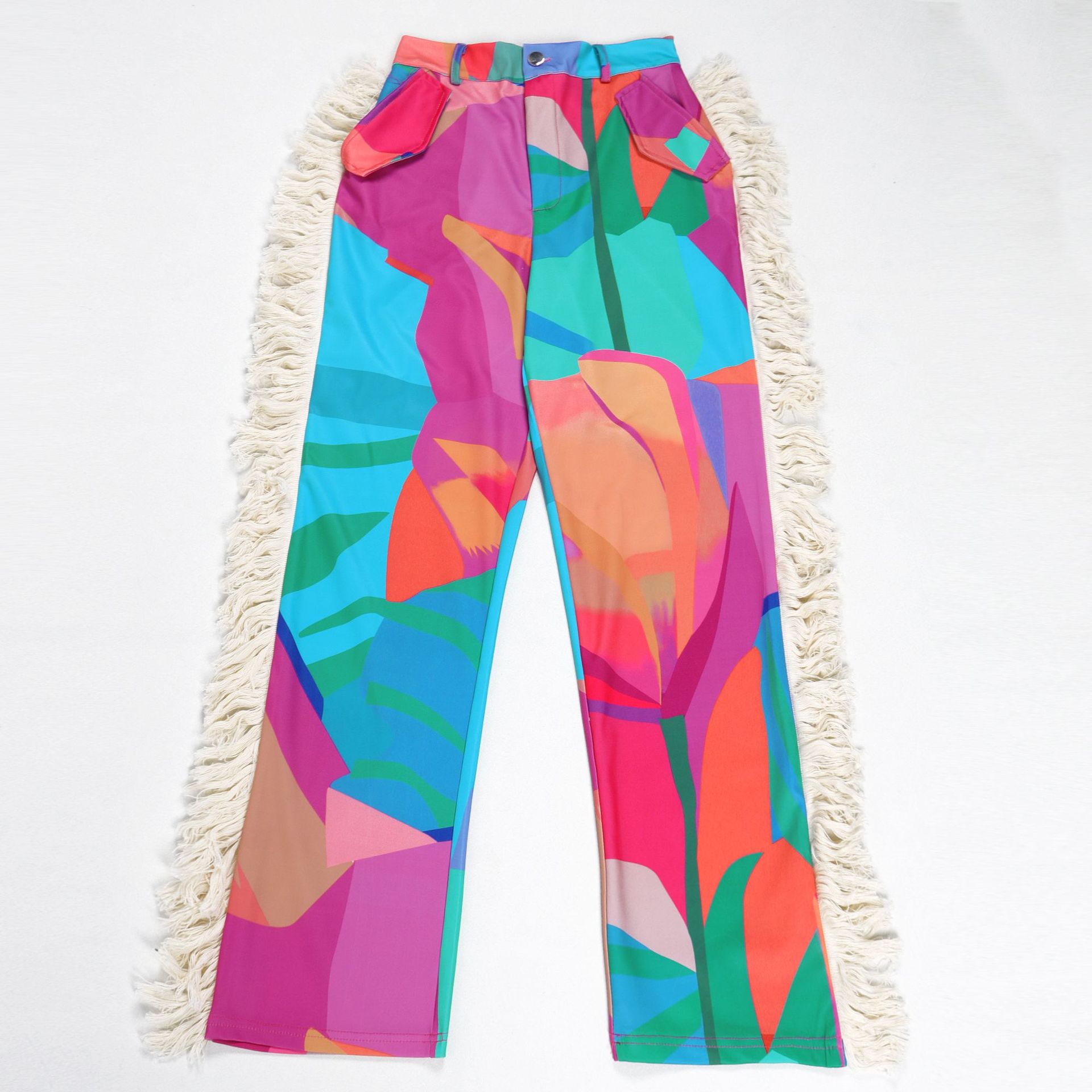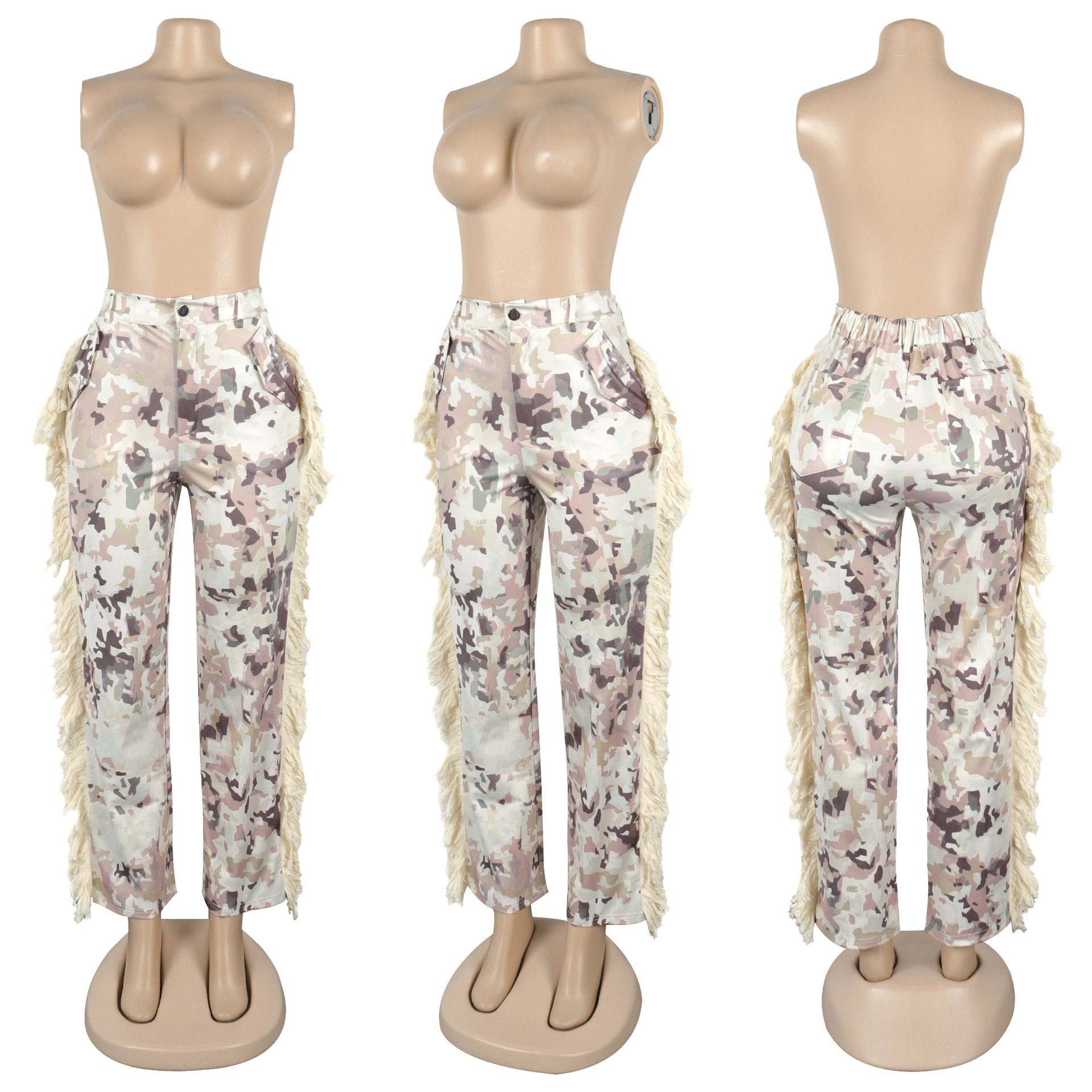 Printed fringe high waisted fringe pocket pants Item NO.: A7485