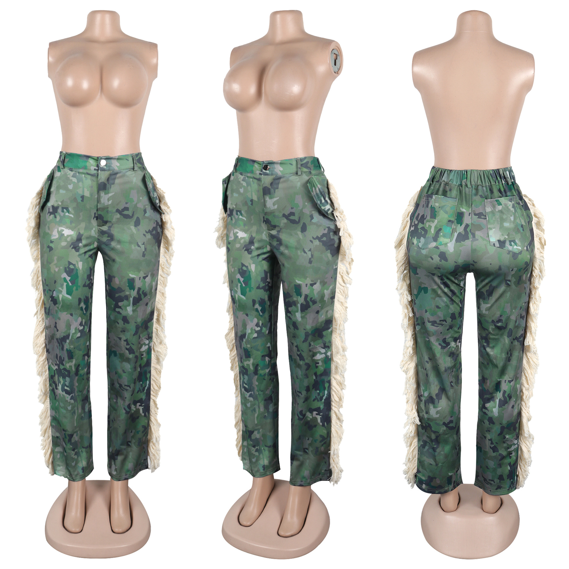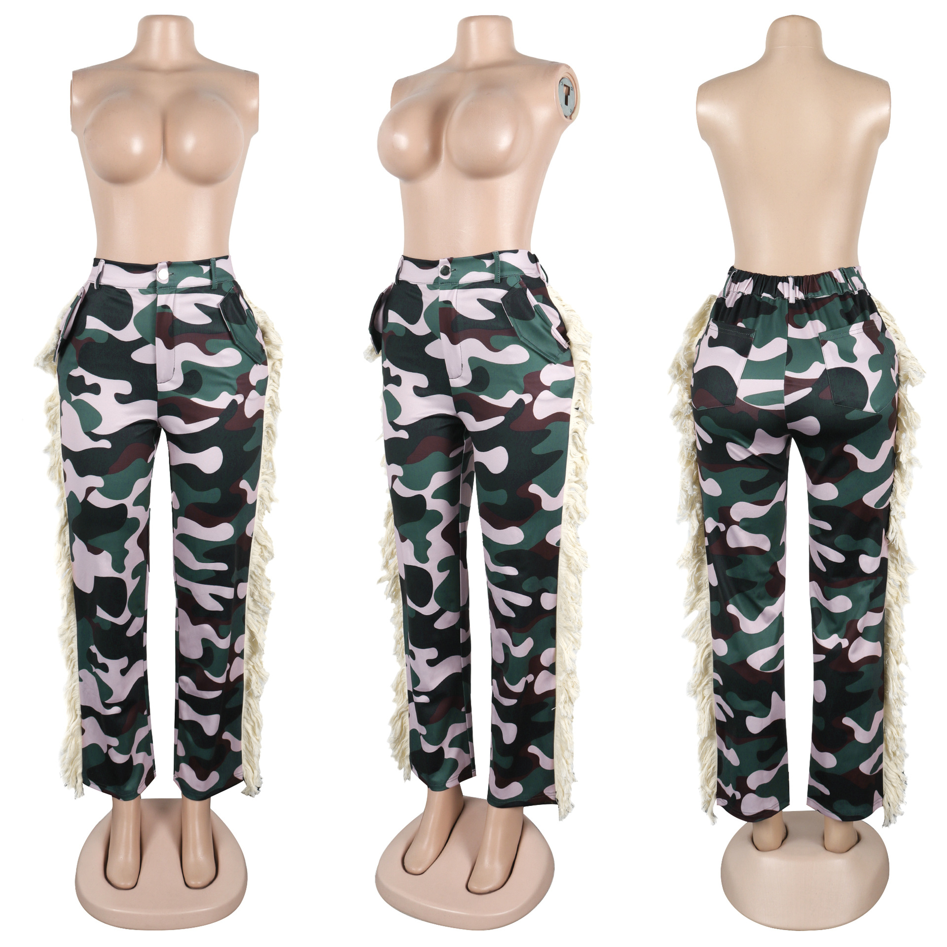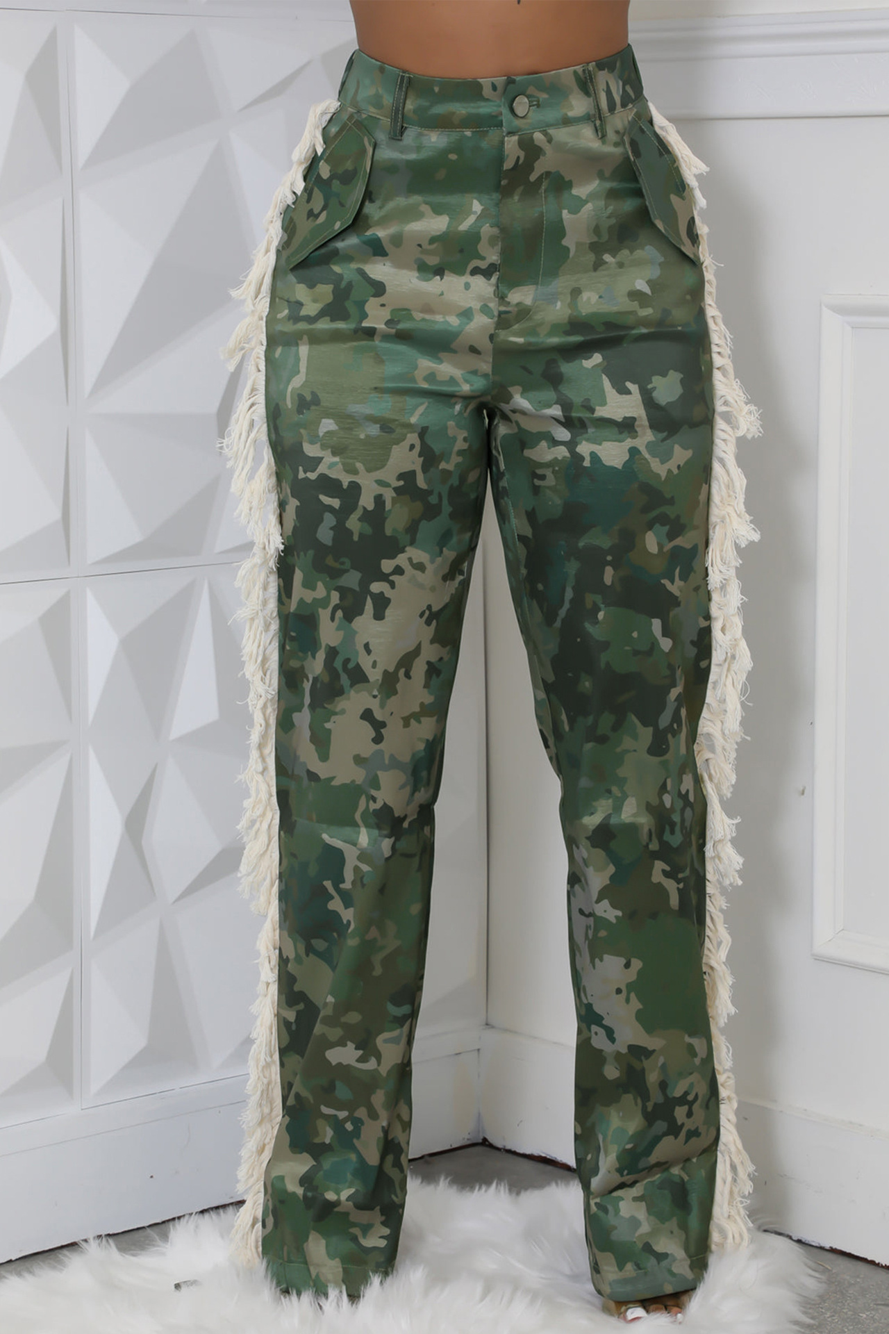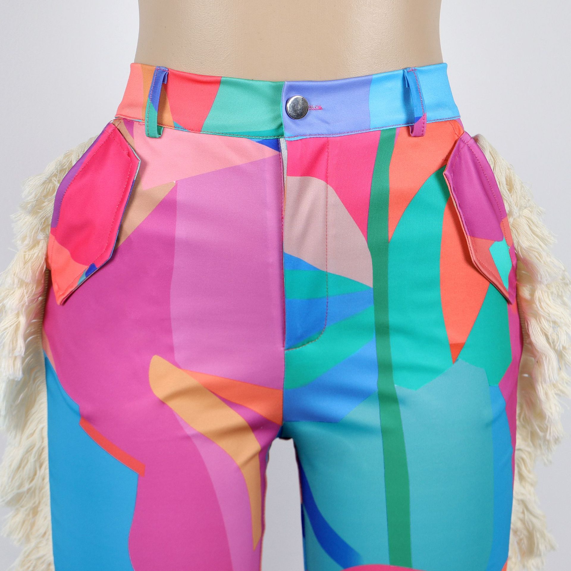 Printed fringe high waisted fringe pocket pants Item NO.: A7485