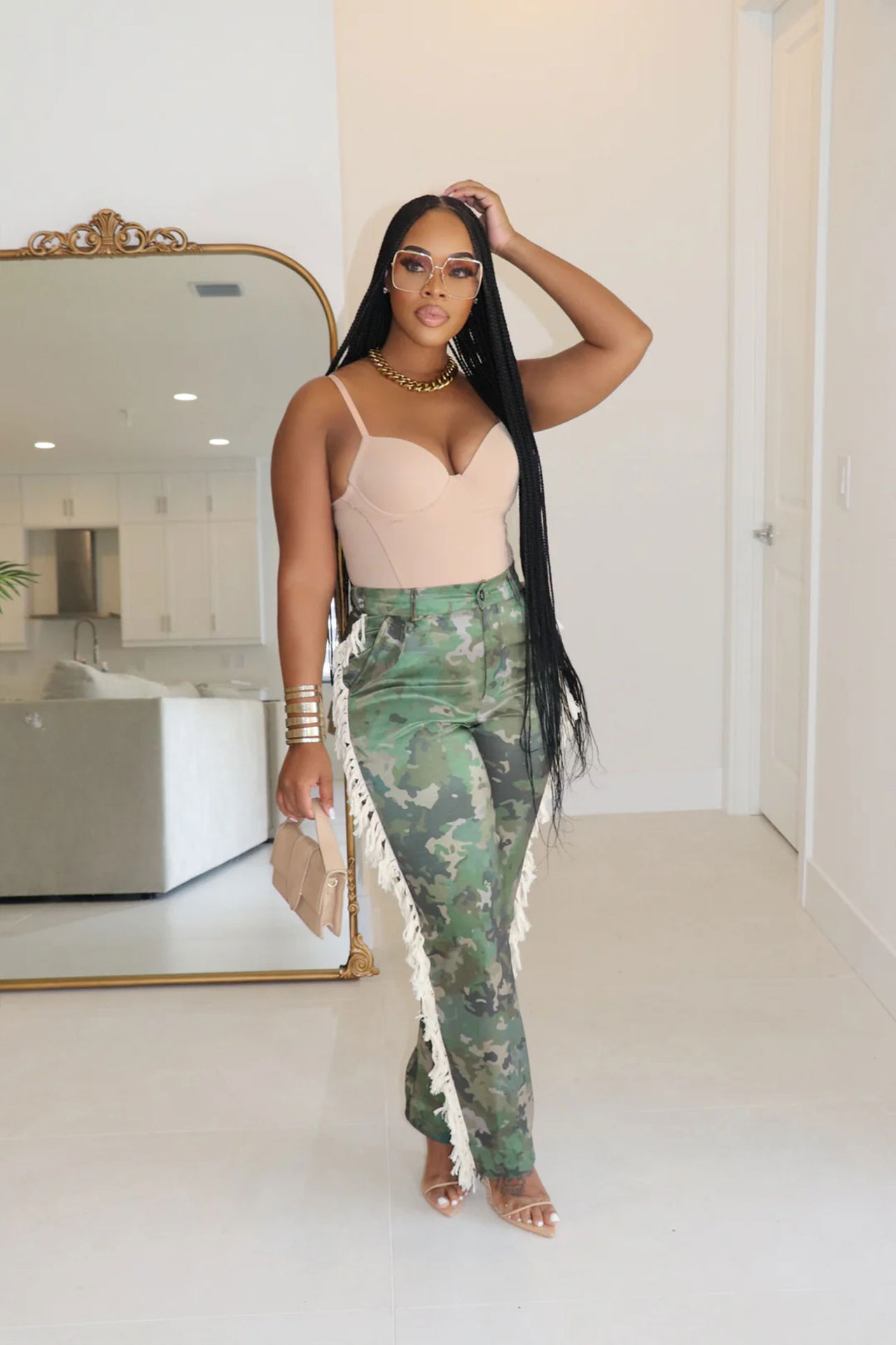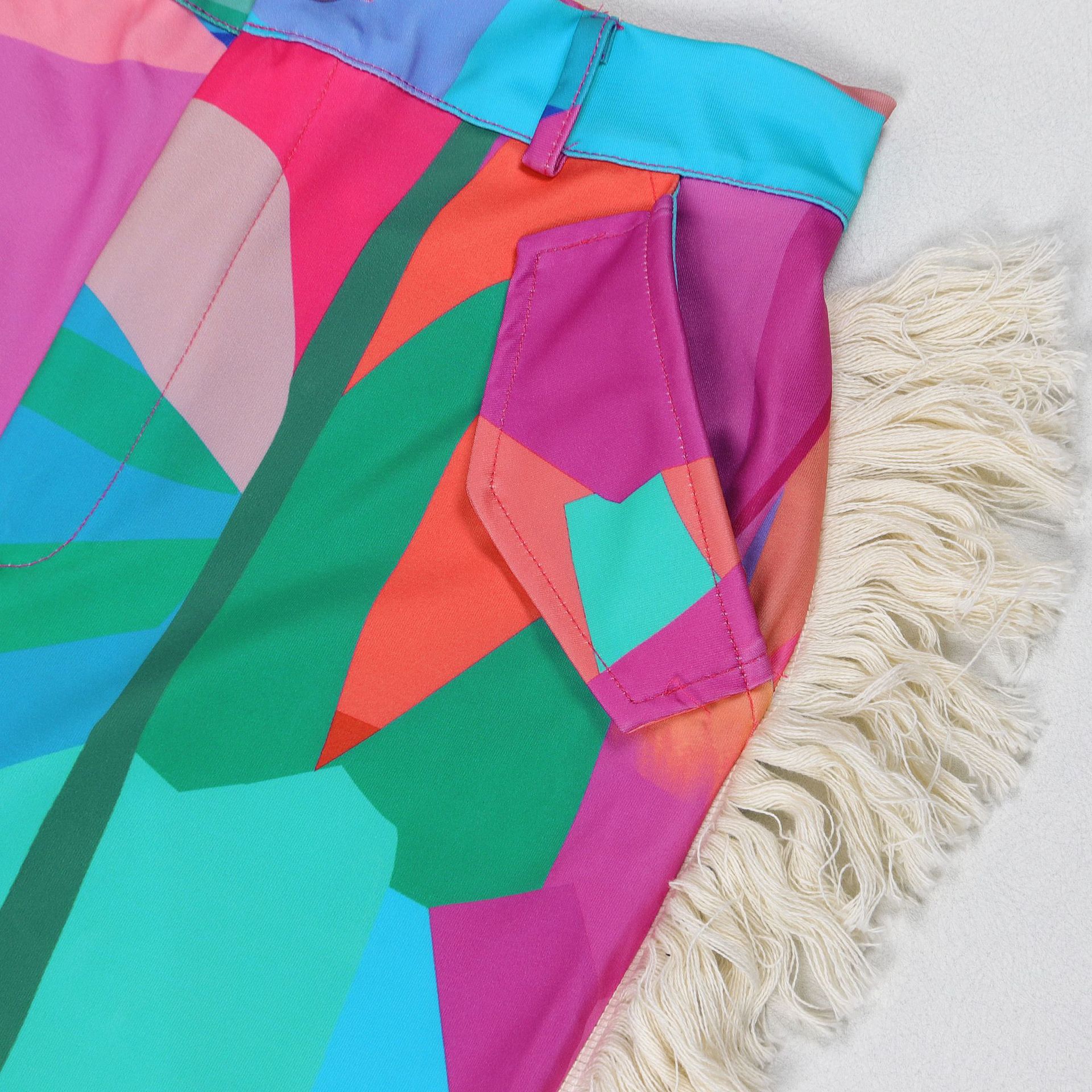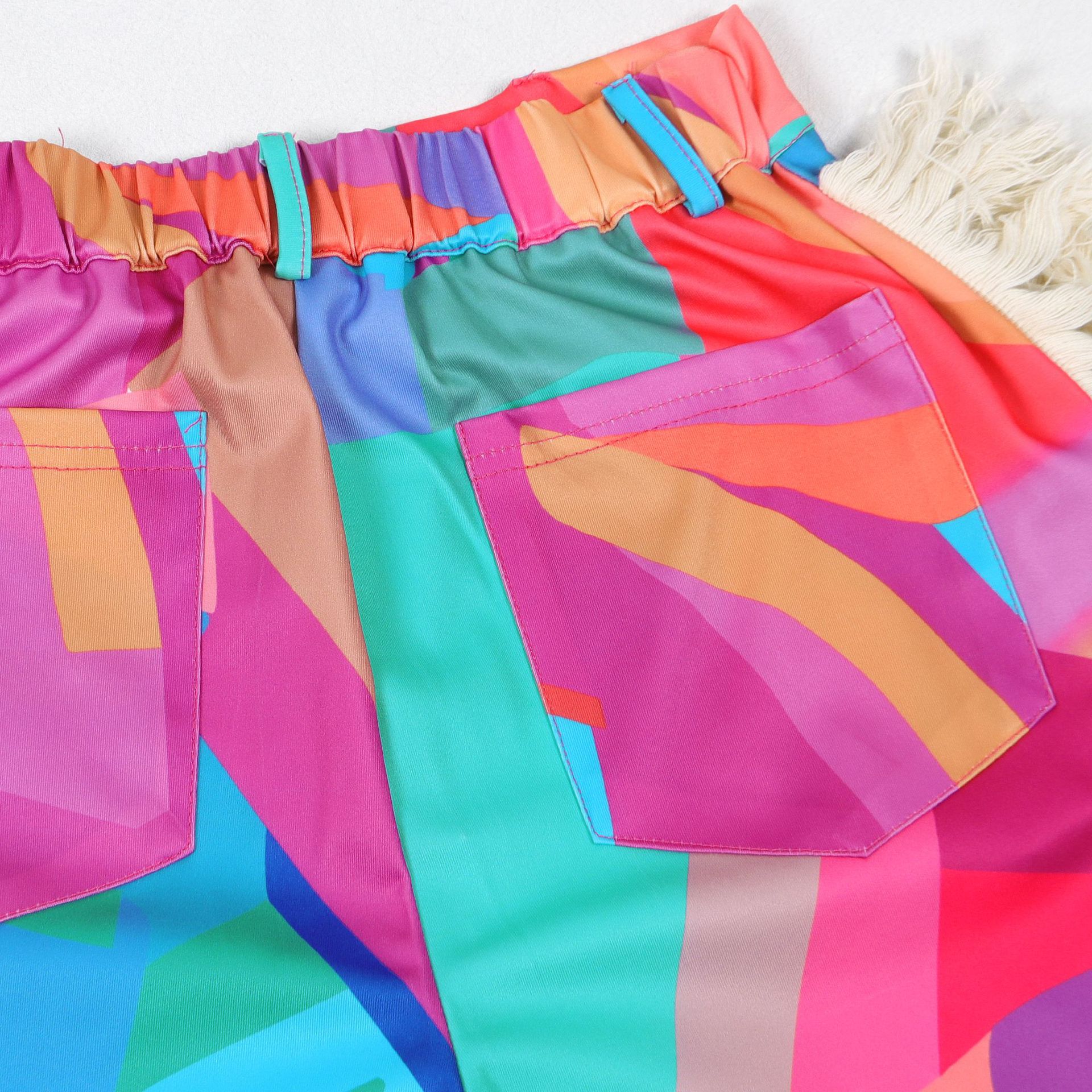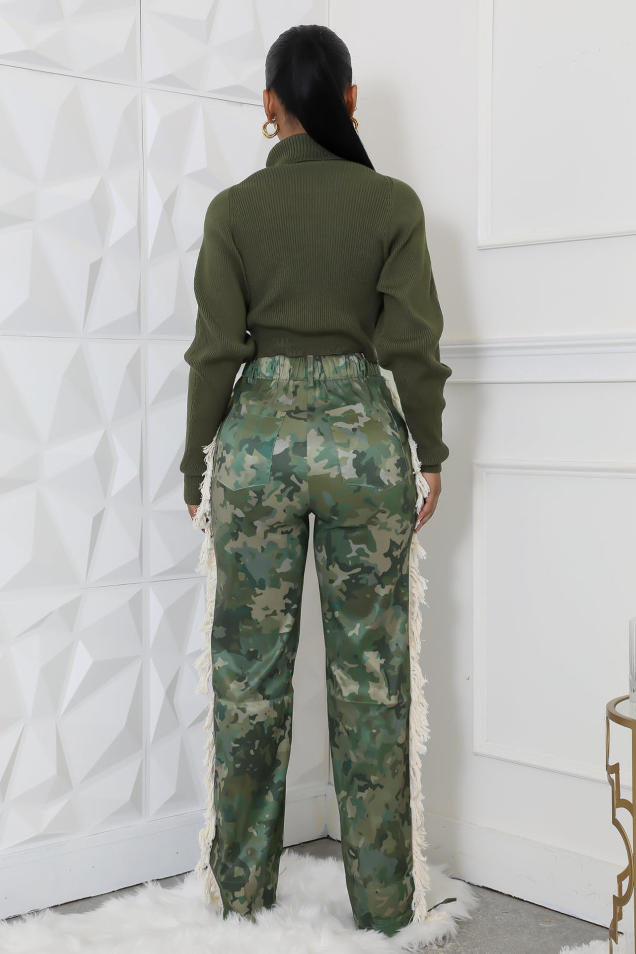 Printed fringe high waisted fringe pocket pants Item NO.: A7485