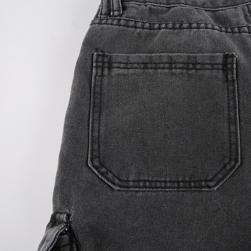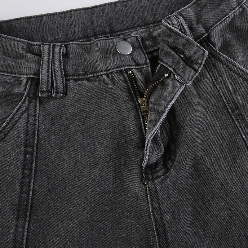 Asymmetric diagonal waist placket jeansUS$ 21.48