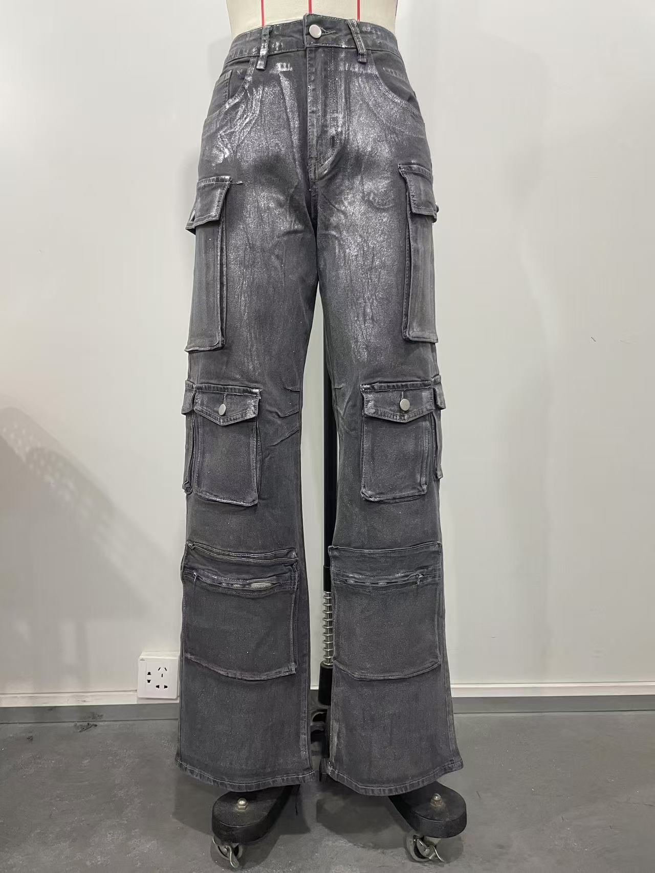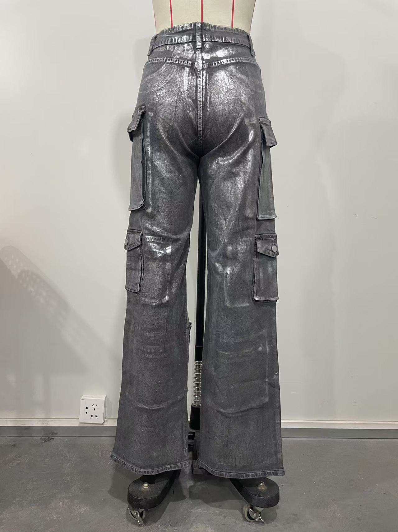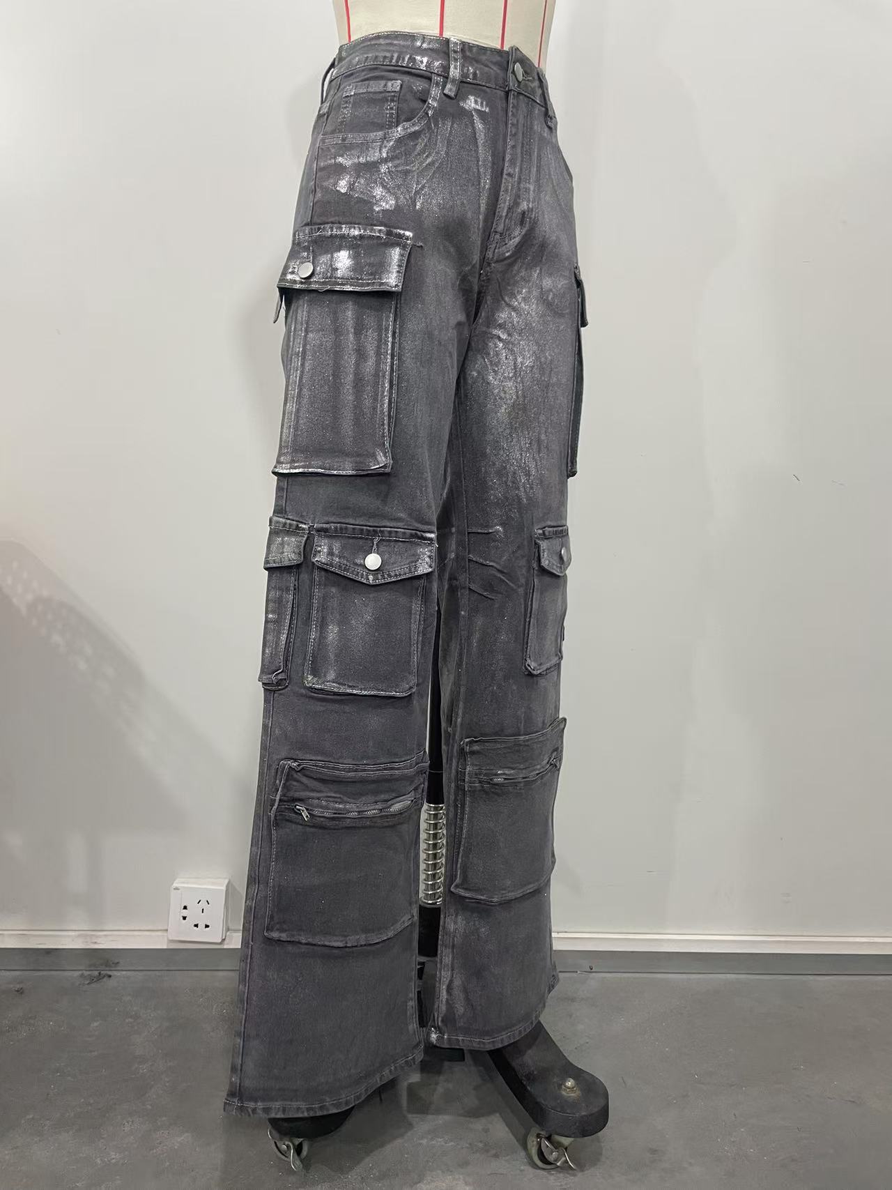 Women's workwear, multi pocket hot silver jeans Item NO.: D8717