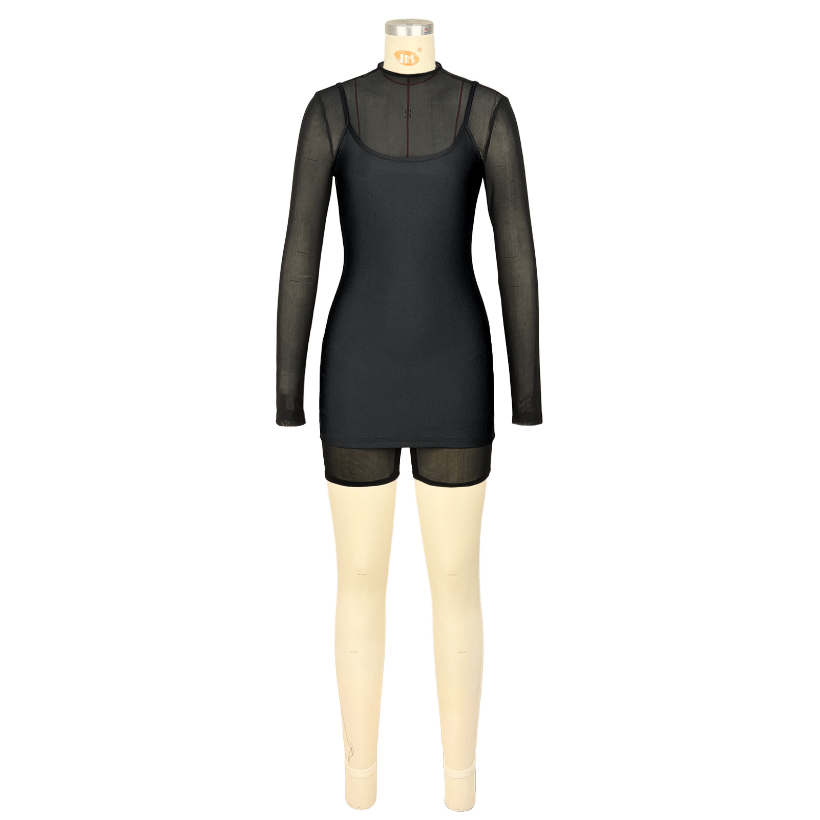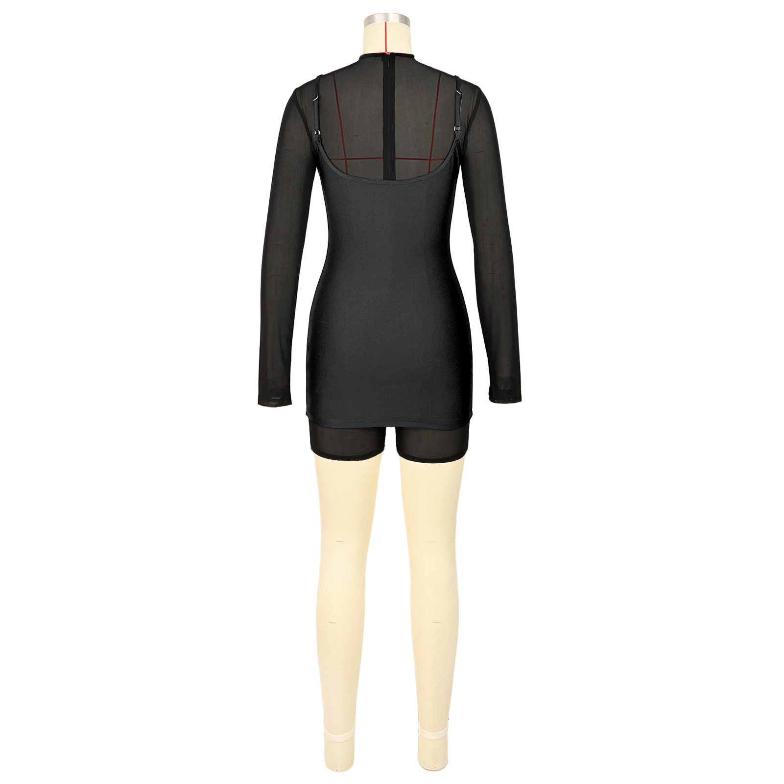 Copy| Product Name | Zipper mesh jumpsuit suspender reflective skirt two-piece set |