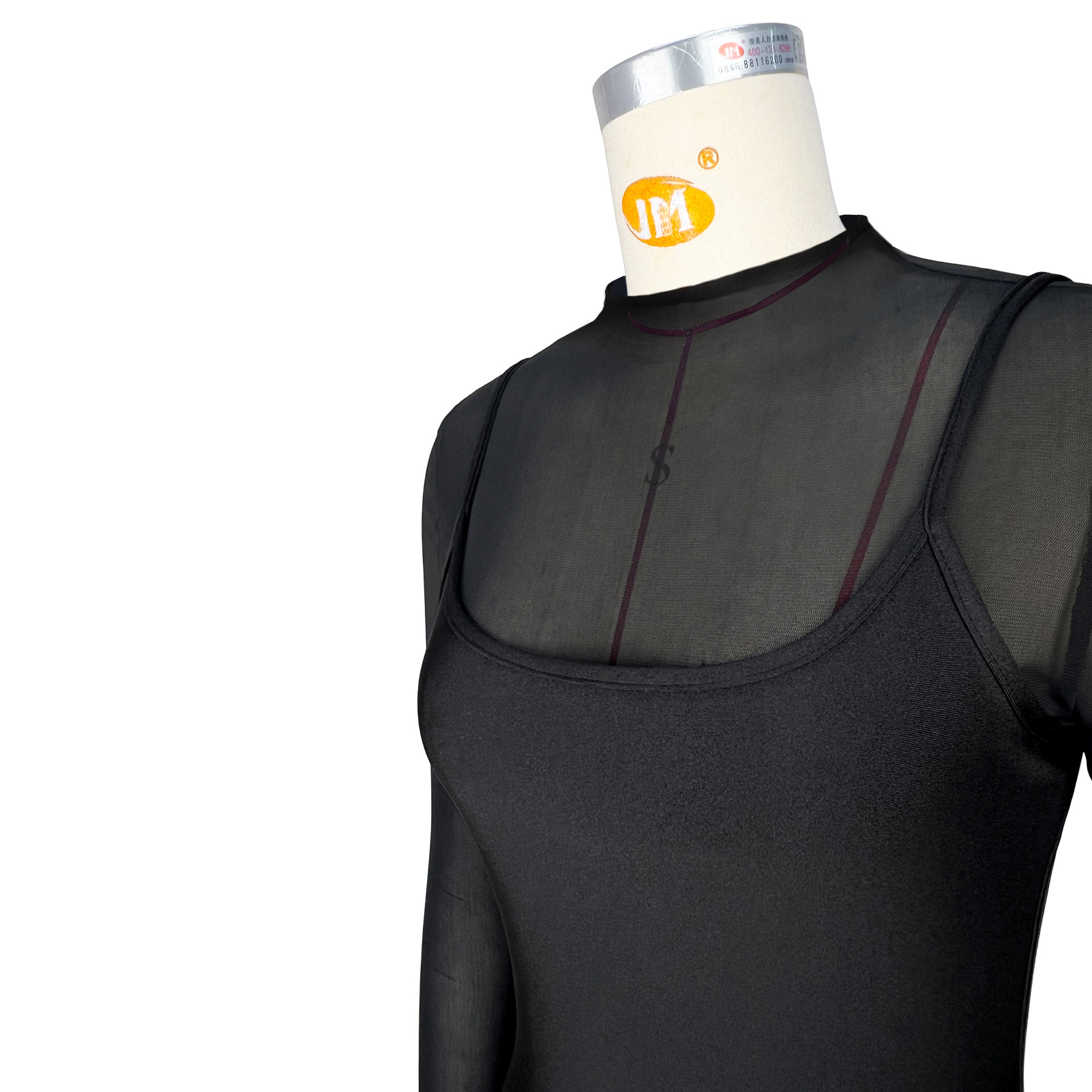 Zipper mesh jumpsuit suspender reflective skirt two-piece set Item NO.: GL6810