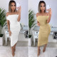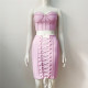 Wearing a strapless diamond studded top with drawstring bandages for a 2-piece dress setUS$ 31.25 ~ US$ 34.72