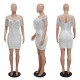Fashion women's gauze perspective hot drilling bubble bead long sleeve feather dressUS$ 16.41 ~ US$ 18.23
