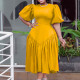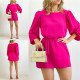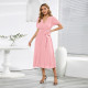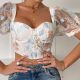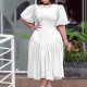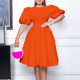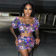 Round neck bubble sleeved short sleeved shirt high waisted pocket shorts two-piece setUS$ 11.52 ~ US$ 12.80