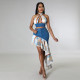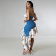Fashion casual wrap chest leak back irregular printing bag hip small fresh suitUS$ 13.67 ~ US$ 15.19