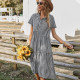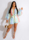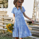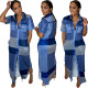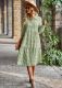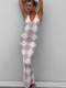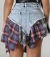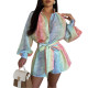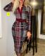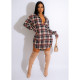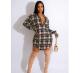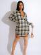 Women's cardigan lapel plaid positioning printed lantern sleeve jumpsuit shortsUS$ 9.18 ~ US$ 10.20