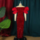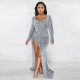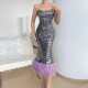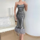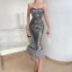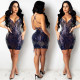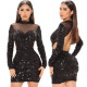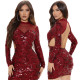 Fashion Sexy Perspective Mesh Round Neck Sequins Open Backpack Hip Party DressUS$ 12.69 ~ US$ 14.11