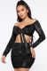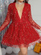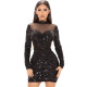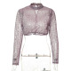 Party Style High Collar Sequins Lace Perspective Long Sleeve Top Loose BodysuitUS$ 14.84 ~ US$ 16.49