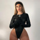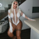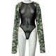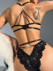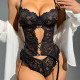 Women's lace sleeve splicing sexy semi transparent V-neck sling one-piece shortsUS$ 6.64 ~ US$ 7.38